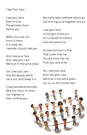 Get the podcast on Spotify for the spoken word version of the poem, the podcast and the song I see your face or download them here.