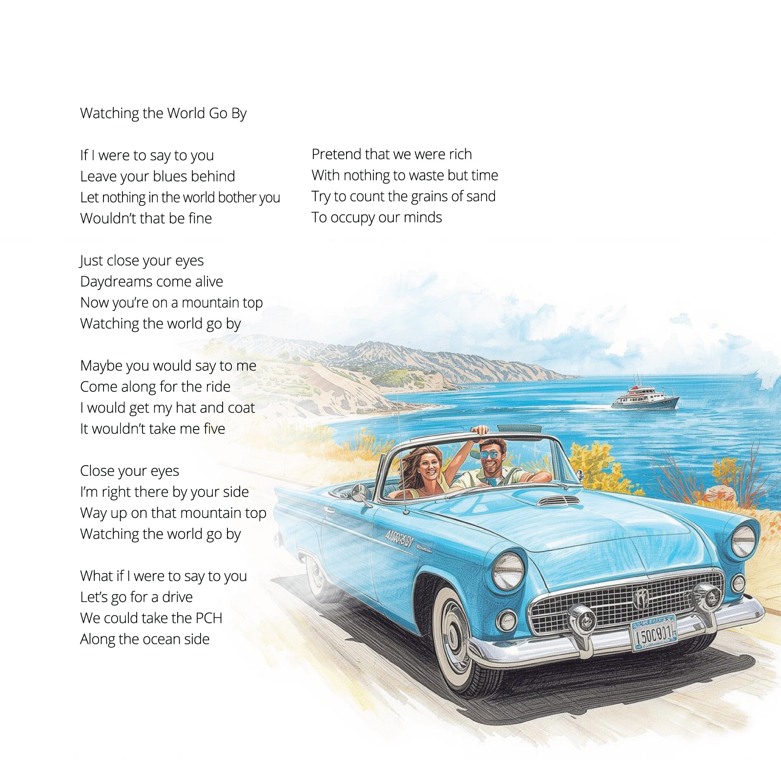 In this intimate poetry podcast episode, Watching the World Go By I invite you to slow down and step outside the noise of everyday life. Through gentle imagery and quiet invitation, the poem drifts from mountaintops to coastal highways, offering a shared escape where time loosens its grip and worry fades into the background.