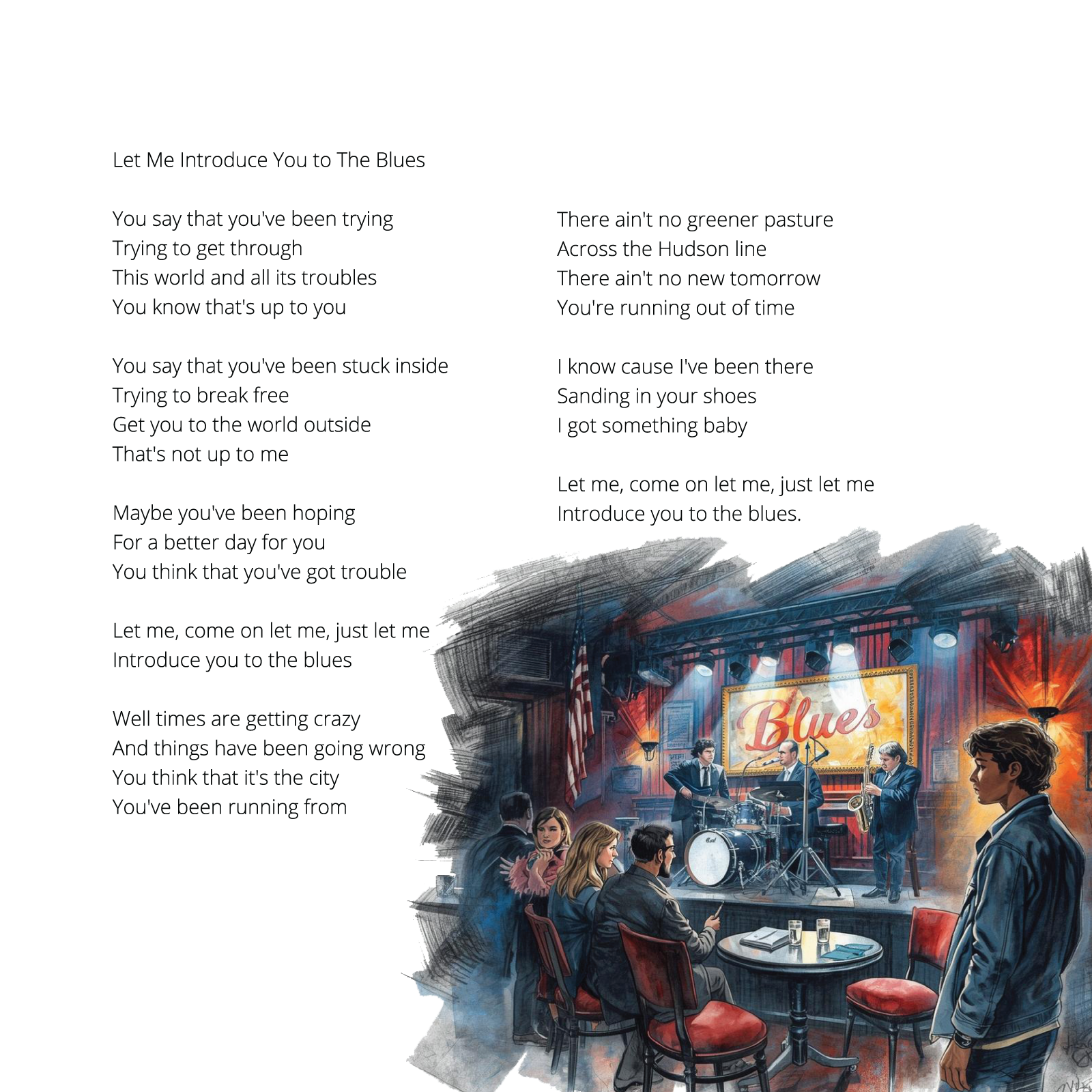 I wrote Let Me Introduce You to The Blues from a place of lived honesty, not theory. To me, the blues isn’t just sadness, it’s awareness. It’s what happens when we stop blaming the world outside and start looking inward. I’m speaking to the part of us that believes a new city, a new relationship, or a new horizon will fix what feels broken inside. I’ve stood there too, staring across the Hudson River and thinking somewhere else might make me whole.